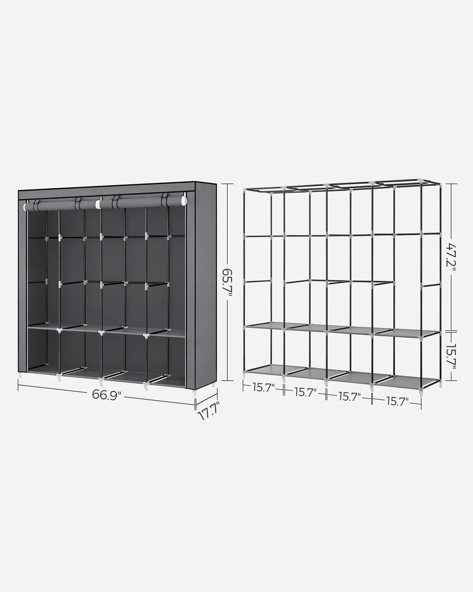 - [What You Get] A portable wardrobe with 4 hanging sections and 4 side pockets that keep your clothes organized, an anti-tip kit for safety, and an easy assembly process with clear instructions