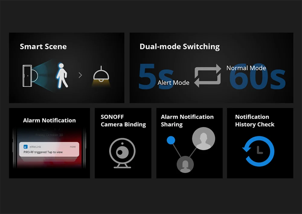 PIR3-RF can be used to trigger smart devices with various protocols as long as it connects with SONOFF RF Bridge.