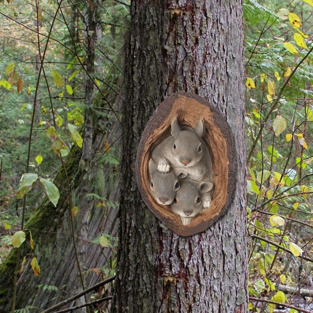 Squirrel Tree Hugger Yard Art Outdoor Tree Hole Statues Tree Face Decor Novelty Garden Decoration Outdoor Yard Art Sculpture