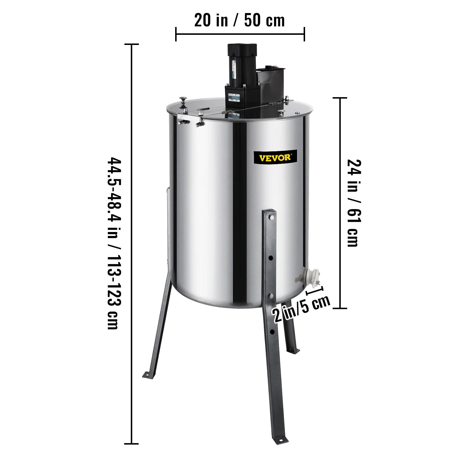 The body of this motorized honey extractor is made of high-quality stainless steel, ensuring durability and a sleek finish. The seamless welding makes it effortless to clean after use.