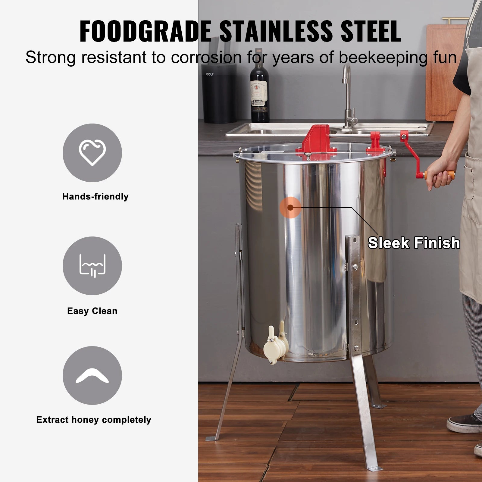 Premium Polished Stainless Steel Stable and Durable Build 4/8 Frame Manual Honey Extractor Versatile and Portable Design