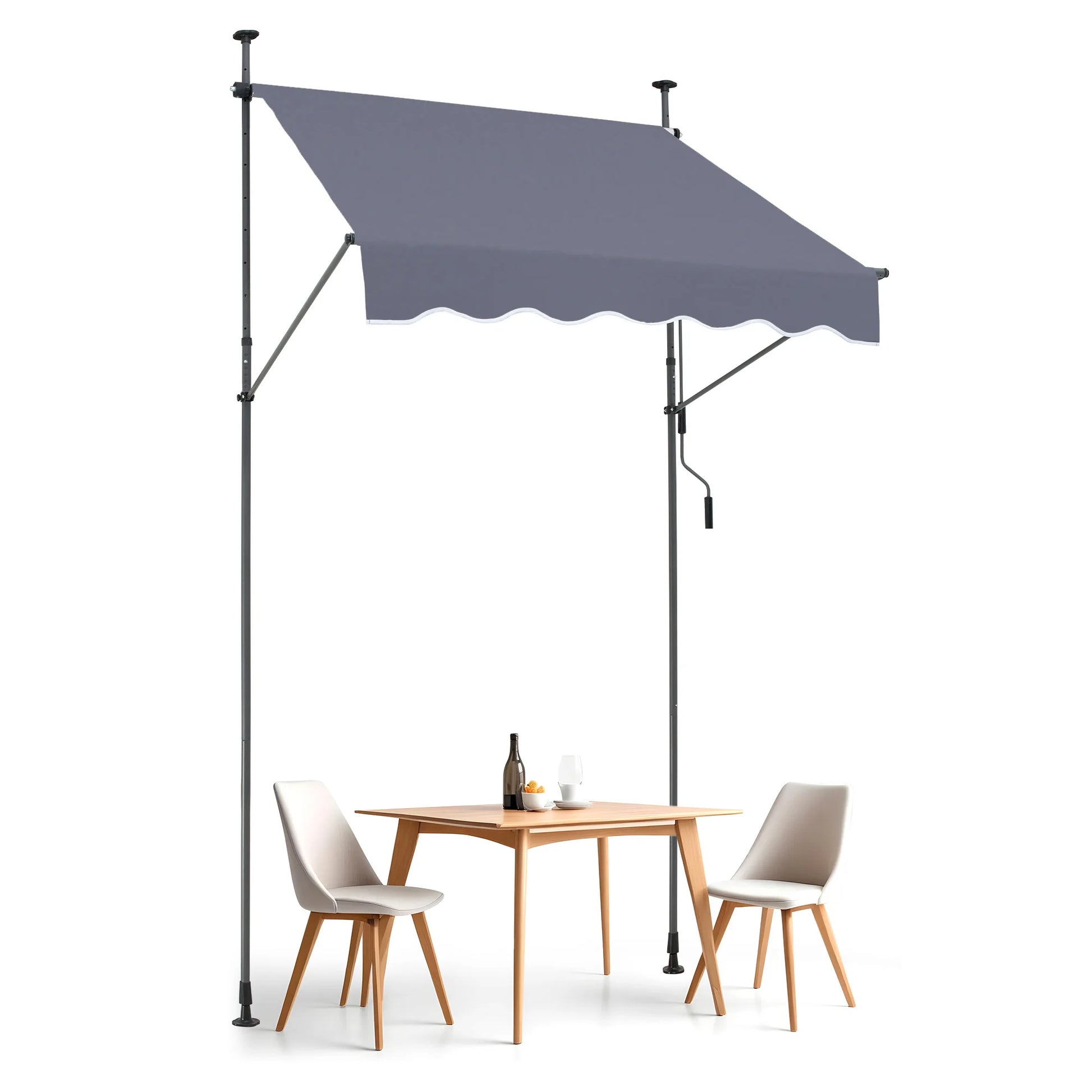 This substantial 59×47 in retractable patio awning is predominantly crafted from steel and equipped with a 180G double-sided PU coating. It not only provides UV80+ protection but also offers effective sunshade and waterproof capabilities. The support pole's height is adjustable from 86 to 122in, catering to diverse door and window heights. The fabric can be effortlessly extended and retracted for storage. It's designed for user convenience, eliminating the need for drilling and allowing for single-person installation.