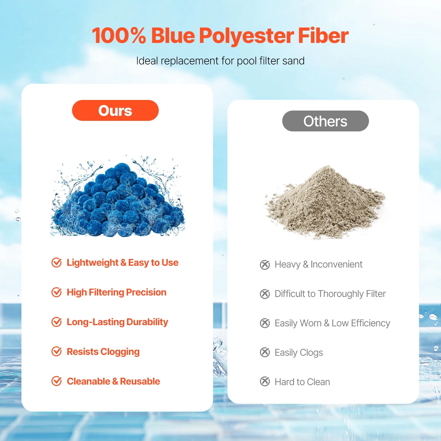 Enhance your pool's filtration with our 100% blue polyester fiber filter balls. Compatible with multiple filter systems, they offer superior performance. Enjoy clear water in no time!