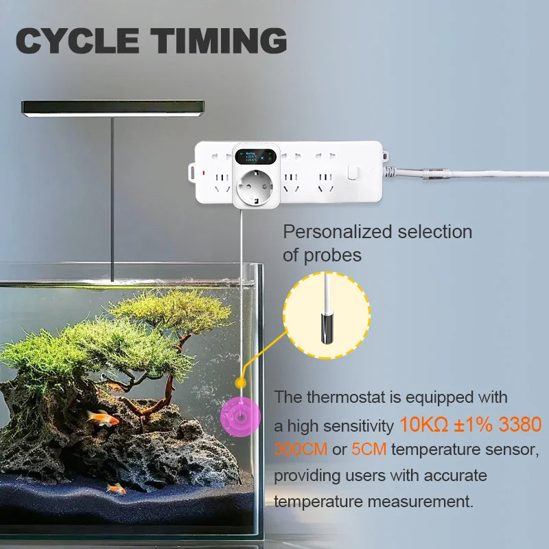 Automatically turns on or off within specific time periods each day to save energy and improve convenience. For example, you can schedule the heater or fan to turn on at the same time every day, or set up cycle timing for functions such as plant irrigation or fish tank water pump circulation.