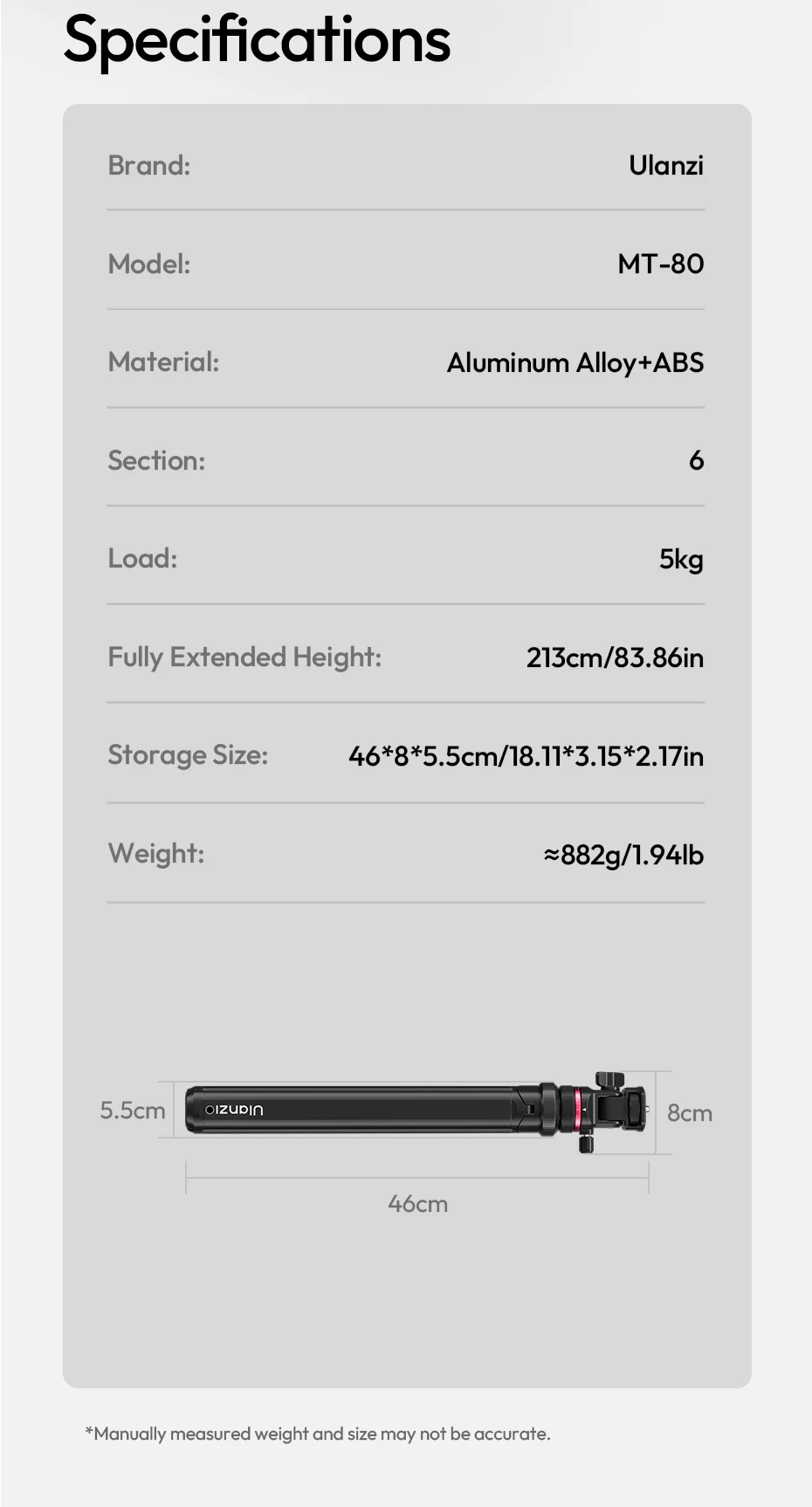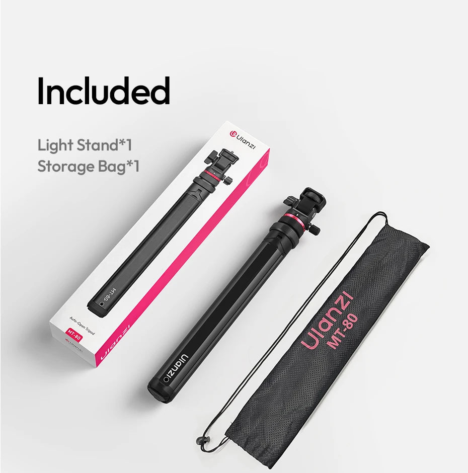 Ulanzi MT-80 2M Auto-Open Camera Tripod Light Stand for Camera COB Light Mount Outdoor Photography with 360° Pan Support 5kg