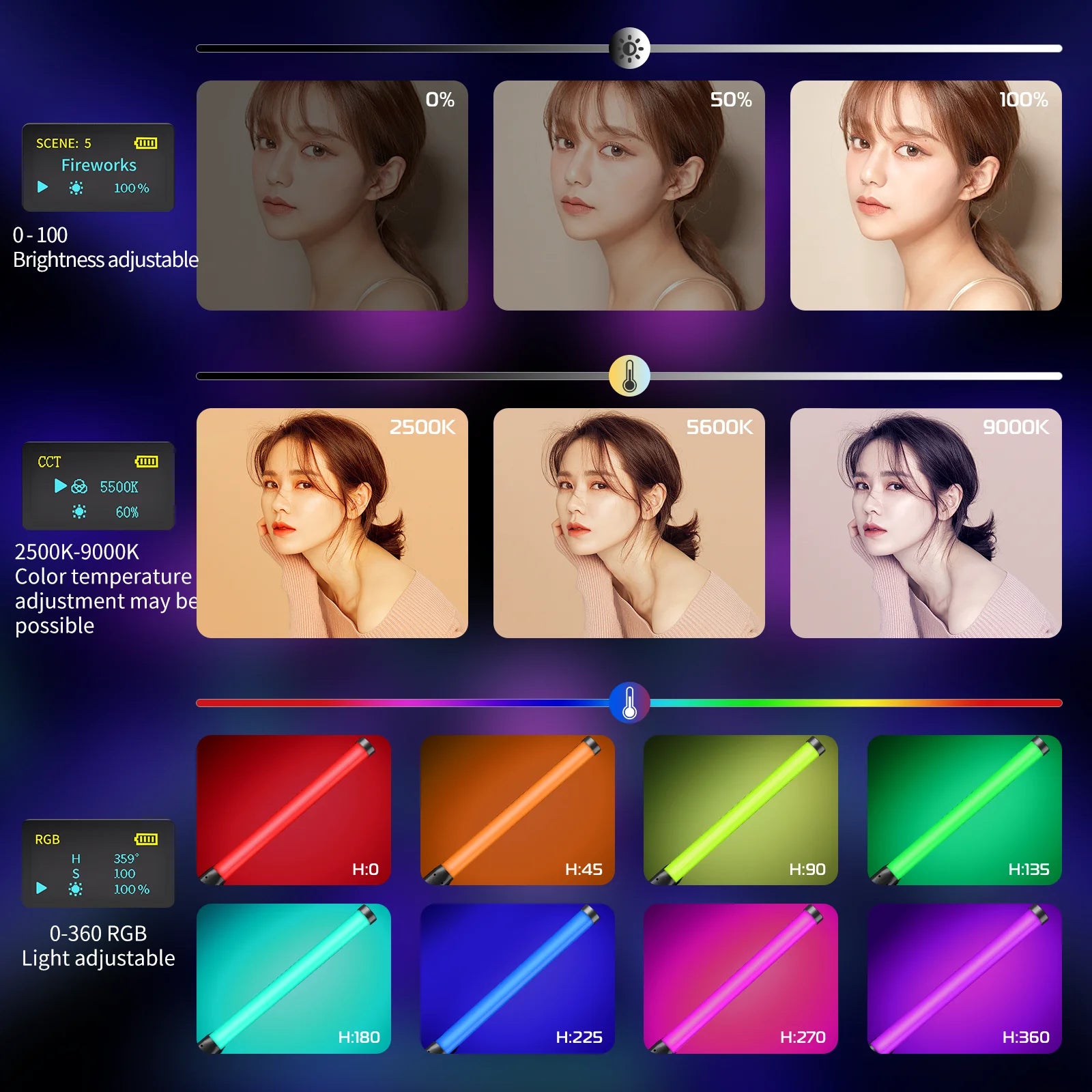 Color Temperature Adjustable,2500-9000K