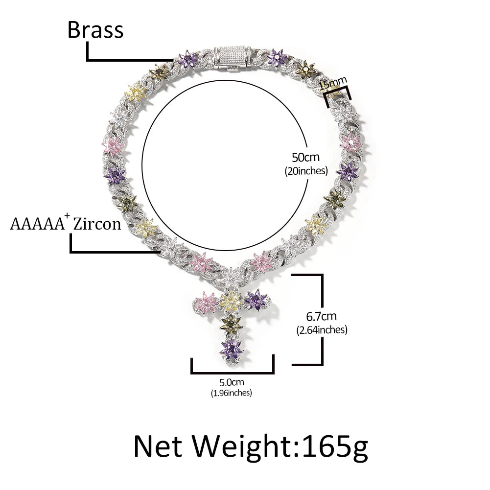 Colorful Flower Cuban Chain - Full Paved Iced Out Baguette CZ Hip Hop Necklace | AlluCanFind