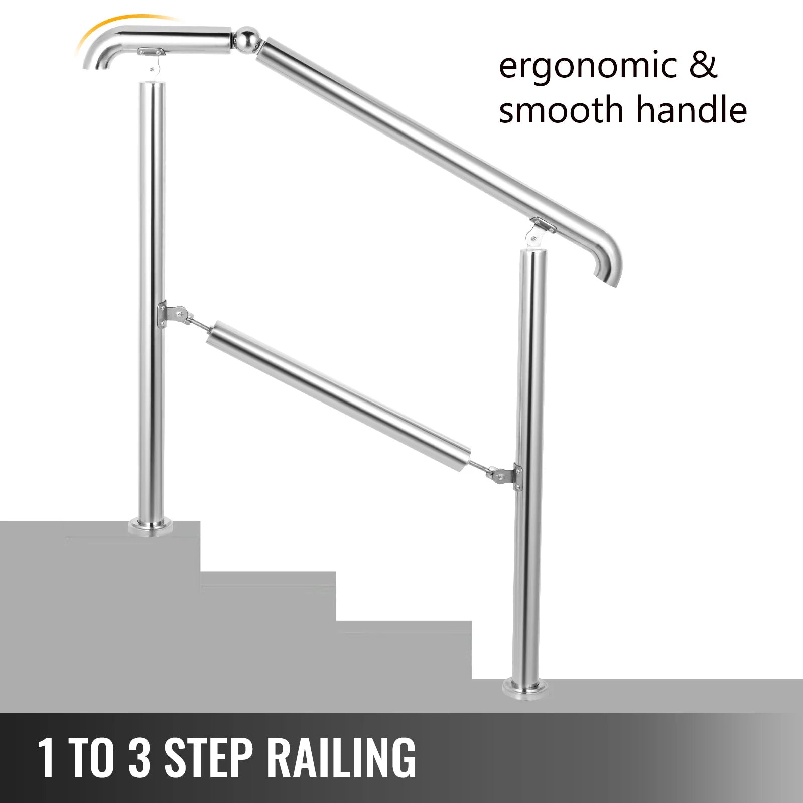 VEVOR 3-5 Step Railing Stainless Steel Transitional Handrail Fit For Level Surface Adjustable Stair Railing Safely Up/Downstairs
