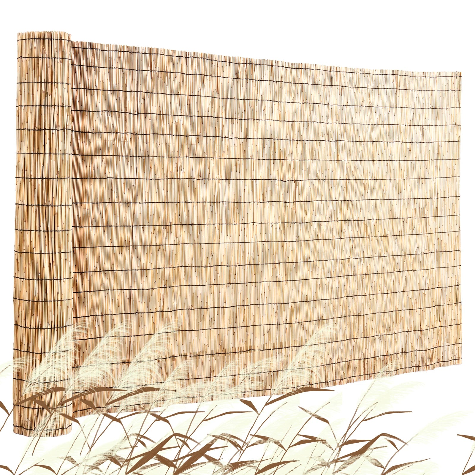 Pure Natural Reed: Our reed fencing is made from high-quality, fully peeled natural reeds. It's neat and smooth, with no leftover leaves or branches. Plus, no worm eggs, so you don't have to worry about rot. This reed fence is naturally waterproof and super durable, making it a great choice for years of use.