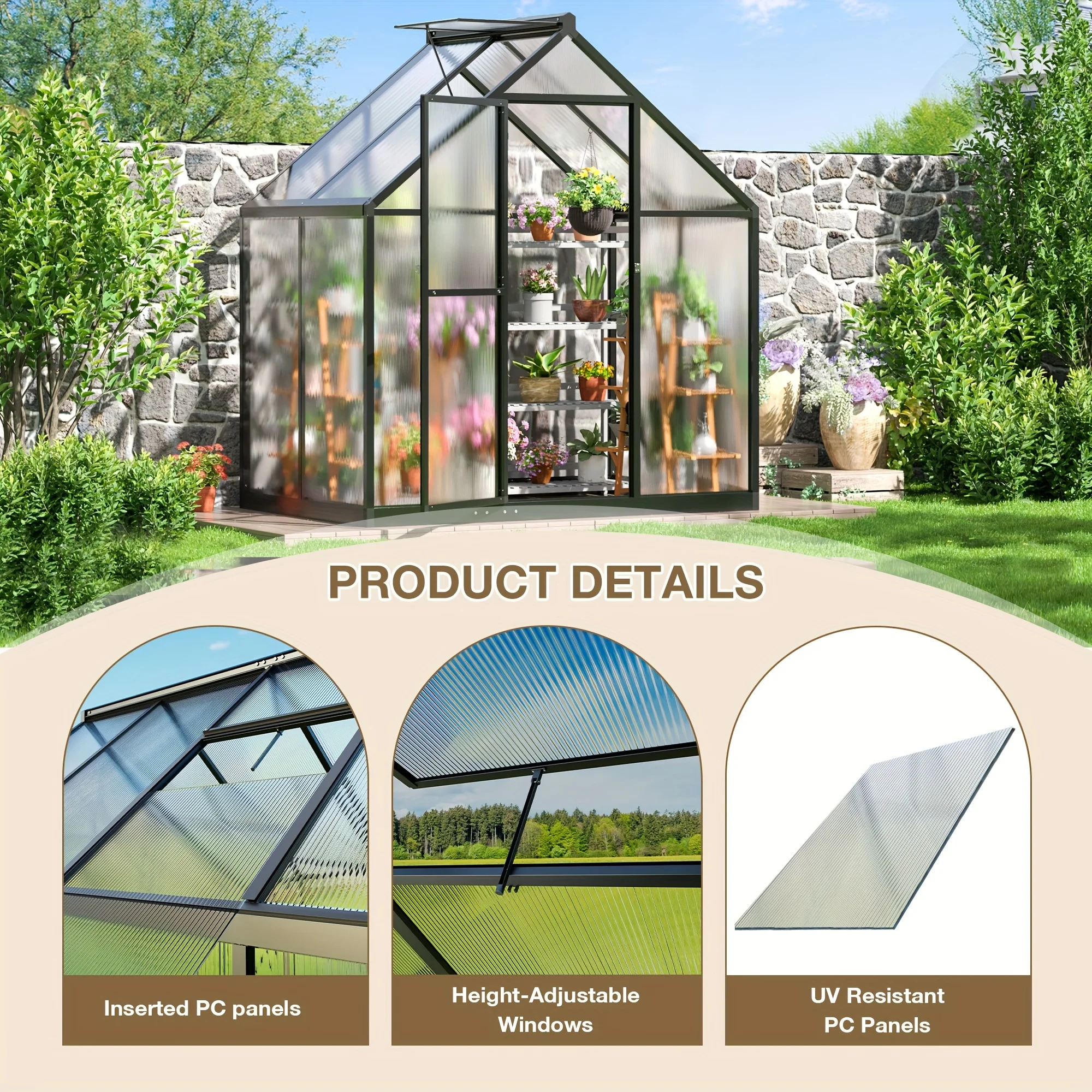 VIWAT 4x6~10x18FT Multi-Size Polycarbonate Greenhouse PC Panels Aluminum Frame Vent Roof UV Protection for Backyard Garden Patio