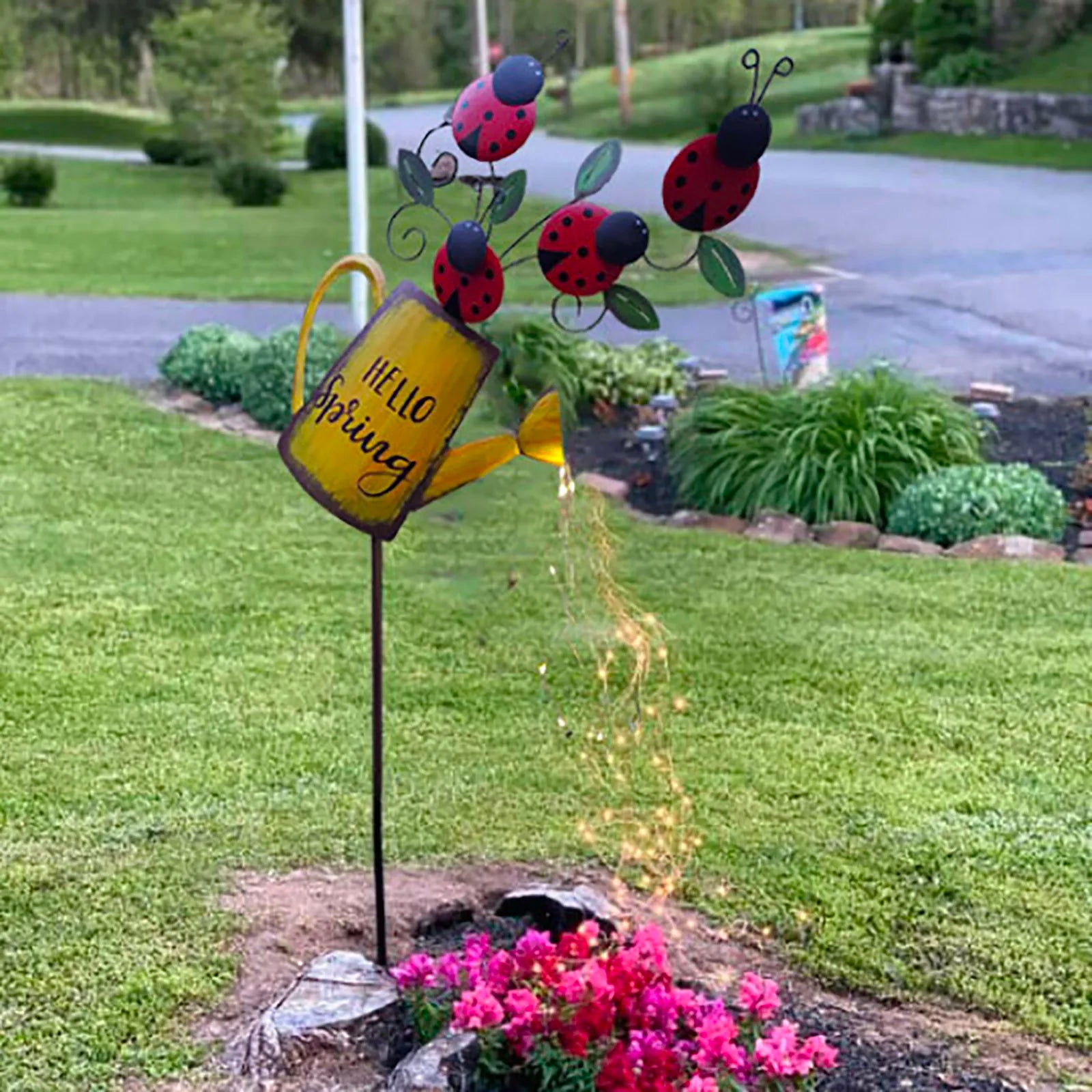 Watering Can Light Led Garden Decoration Light Garden ladybug, Outdoor Ladybug Decorative Light for Patio Garden Table Decor