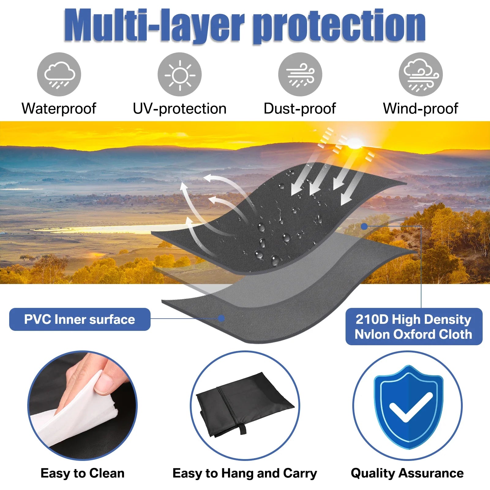 This heavy-duty parasol cover is waterproof, UV-resistant, tear-resistant, and fade-resistant, better protect your parasol from harsh environments such as strong sunshine, rain, snow, dust, and more.