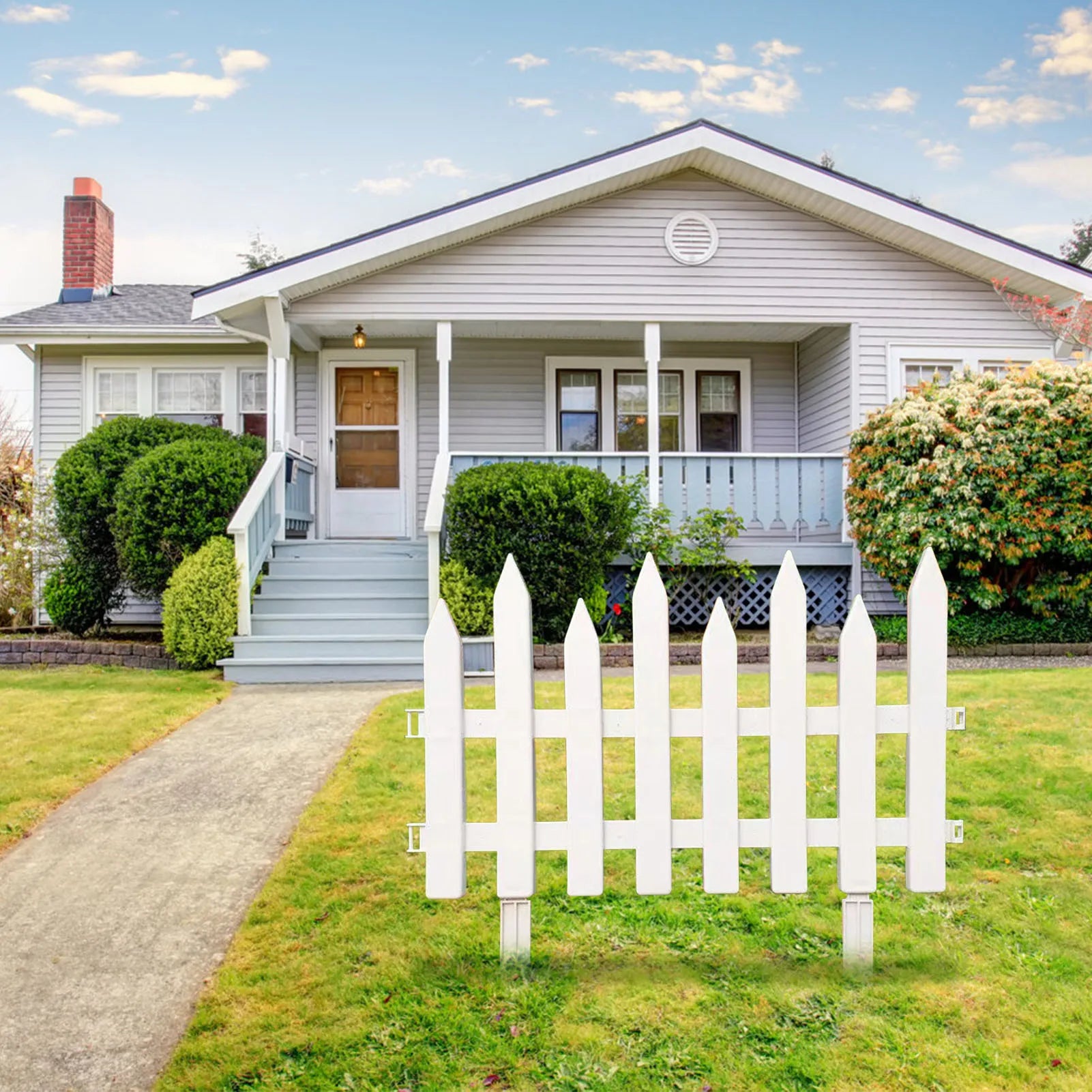 Enhance Curb Appeal: Add a touch of elegance to your property with these white garden plastic fences, creating a welcoming and visually appealing scene to your home.